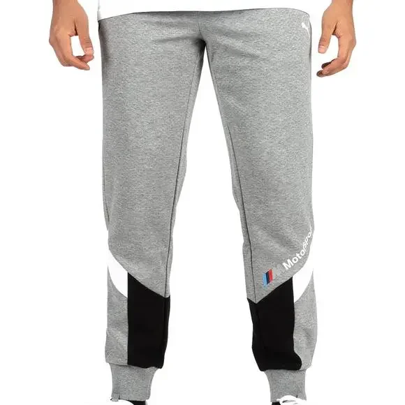 Style: 598941-03Color: GrayGender: Mens* Regular fit* Tapered leg* Elastic waistband with drawcords for adjustable fit* Dual side zip pockets for secure storage* Single back pocket with concealed zip* Rib cuffs* Iconic MCS panels and colorblocked panels* "Motorsport" wording at left knee* PUMA Cat Logo at left hip* Elevated double knit fabric with structured surface and wicking finish