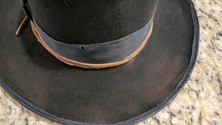 Transformed a Bailey hat into one seen on MGM’s “Billy the Kid” series. Hat has some distressing to give it that Lincoln , NM Regulator seen some things feeling. Ready to hit the gambling tables.