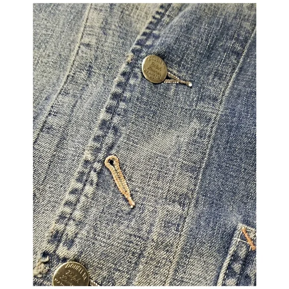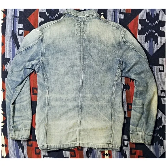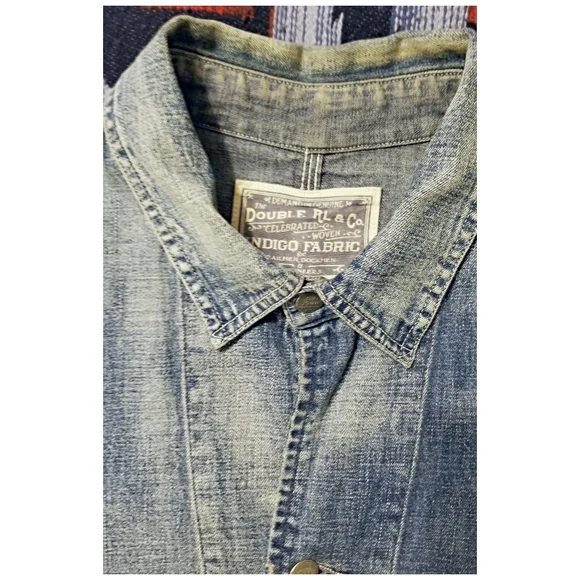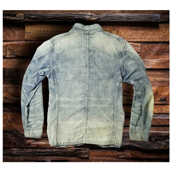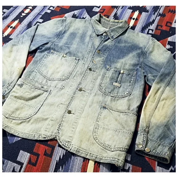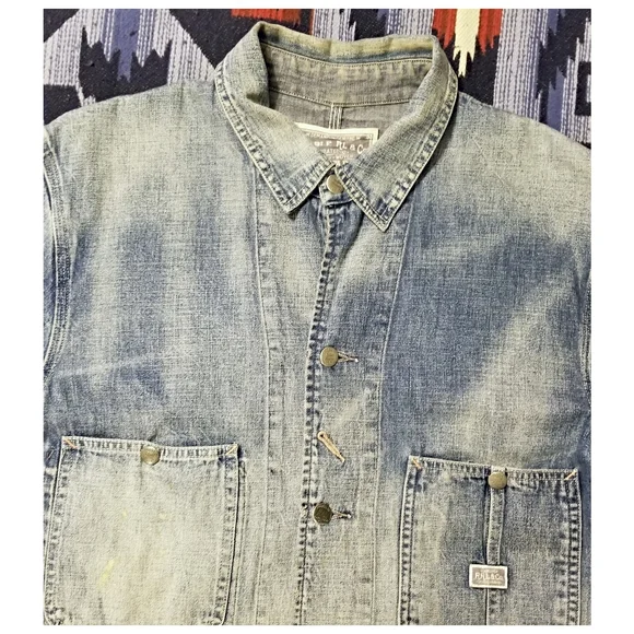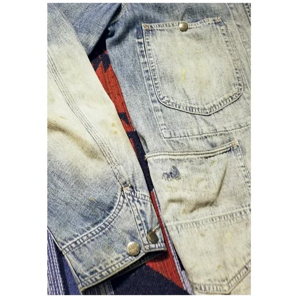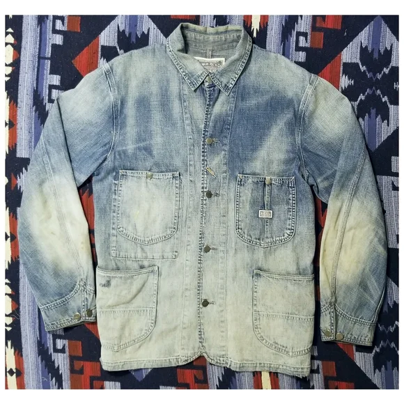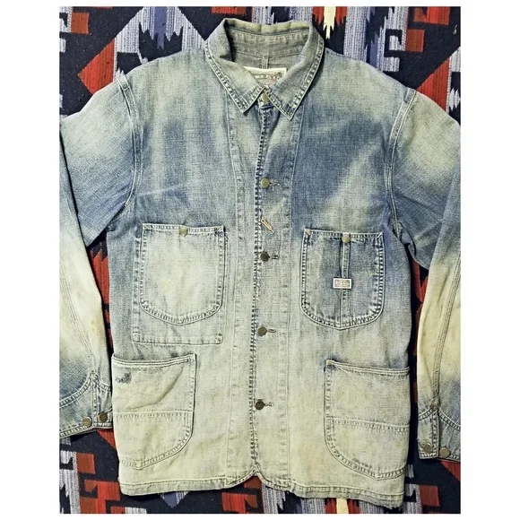 DOUBLE RL RALPH LAUREN RRL DISTRESSED & FADED ENGINEER'S CHORE JACKETMEN'S SIZE LARGE SUCH A BEAUTIFULLY DISTRESSED DENIM JACKET... NATURALLY DYED INDIGO DENIM... 100% COTTON... ALL DISTRESSING AND STAINING DONE BY DESIGN IN THE MANUFACTURING PROCESS... BRANDED STEEL BUTTON CLOSURE... 5 POCKET DESIGN... TRIPLE SEAM CHAINSTITCH CONSTRUCTION FOR DURABLE STRENGTH OF THE SEAMS... MOCK UNION TAG IN THE POCKET... JACKET WAS WELL CARED FOR AND IN EXCELLENT CONDITION... THE JACKET ONLY LOOKS BETTER THE MORE YOU WEAR IT... PLEASE VIEW ALL PHOTOS AND APPROX MEASUREMENTS BEFORE PURCHASING... PRICE IS FIRM SO PLEASE NO OFFERS.P2P- 23"WAIST- 22"SLEEVE- 26"SHOULDERS- 19.5"LENGTH- 28"#rrl #doublerl #ralphlauren #polo #poloralphlauren #polocountry #denimandsupply #chaps #rugby #lee #levis #lvc #levisvintageclothing #levistrauss #pendleton #pendletonusa #woolrich #filson #wrangler #rogueterritory #nakedandfamous #nudiejeans #apc #selvedge #selvedgedenim #rugged #ruggedstyle #ruggedfashion #mensfashion #mensstyle #mens #mensclothes #mensjacket #vintage #timelessfashion #distressed #stained #denim #denimhead #chorecoat #chorejacket #large #cotton #workwear #railroad