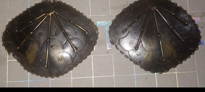 Add a touch of exotic sophistication to your style with these stunning African vintage-inspired pendants for necklace making. Crafted from dark purplish iridescent seashell metal, their striking hues shimmer beautifully. Nice for beach lovers or vintage jewelry enthusiasts, these pendants bring a unique charm to your collection. Their weight speaks of their quality. Plus, your purchase contributes to supporting innocent victims of the Gaza emergency—style with purpose and compassion.