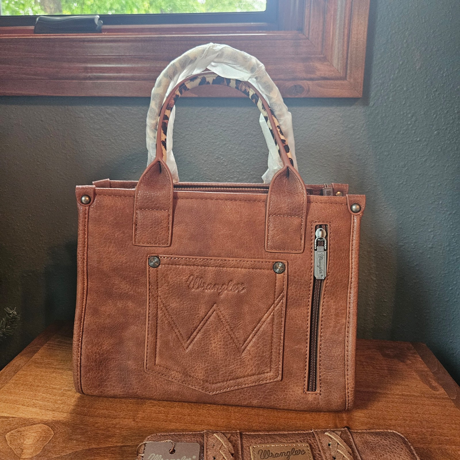NWT Wrangler Leopard Print Tote Bag and Matching Wallet/Wristlet Bundle.