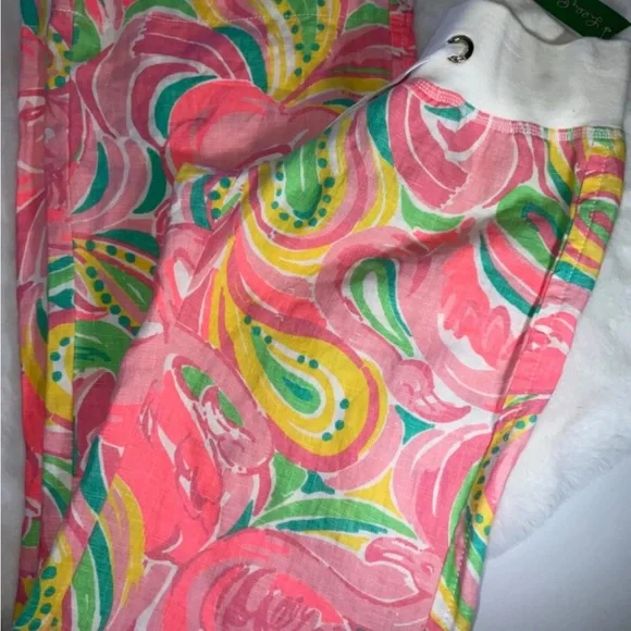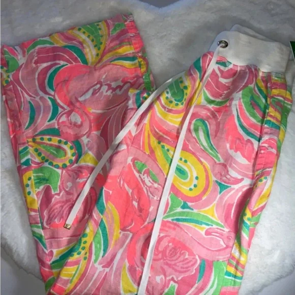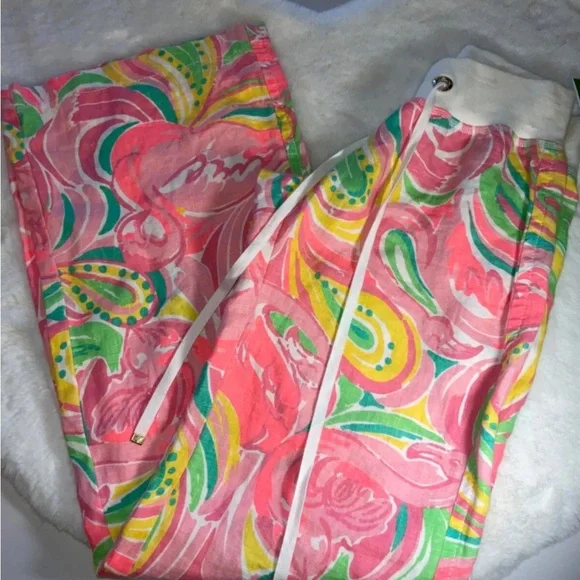 When summer vacation in paradise is on the horizon, it's time to find the perfect pair of linen pants. And what Lilly lover couldn't see themselves walking along the beach in these beauties? The classic palazzo style gets a Lilly upgrade with washed linen fabric, easy pull-on styling, and an overall sunny and chic look. Don't take a plane to paradise without our linen palazzo pants in your suitcase. Where to Wear: If you're eating or relaxing in the sun, these pants are the perfect choice. Complements, Please: Pair with a printed, flowy top for the ultimate bohemian vibe.Mid-rise, pull-on, easy fit, washed linen palazzo pant.33" Inseam.Beach Linen (100% Linen).Machine wash cold, separately.Imported.