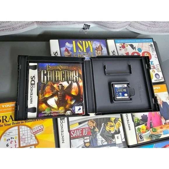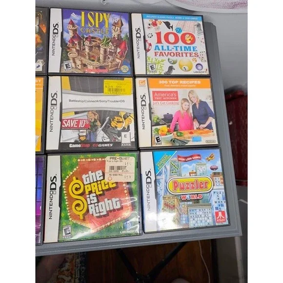 Pre-owned and in very good working condition!This listing is for a lot of 9 educational/entertainment Gameboy DS games.Below are the details on each game: Brain Age - Complete in BoxThe Price is Right - Complete in BoxPuzzler World - Complete in BoxJeopardy - Complete in BoxBattleship/Connect4/Sorry/Trouble - In box but not complete (no manuals)America's Test Kitchen - Complete in BoxI Spy Castle - Complete in Box100 All-Time Favorite - Complete in BoxPuzzle Quest Galactrix - Complete in BoxAny questions, please ask! Bin: EL1Lot: JP110