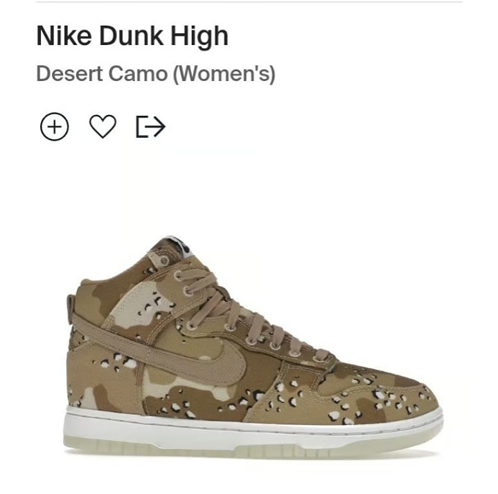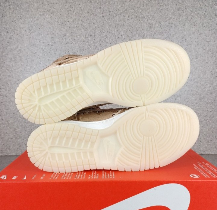 Elevate your style with these fashionable Nike Dunk High Desert Camo sneakers. They're brand new and come with half the box (lid not included).