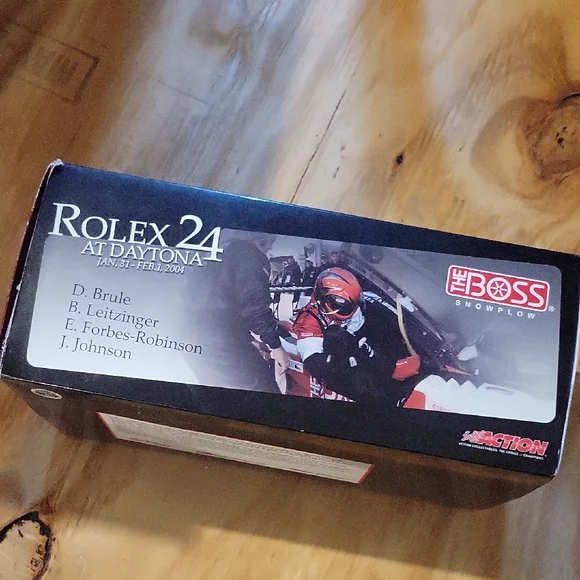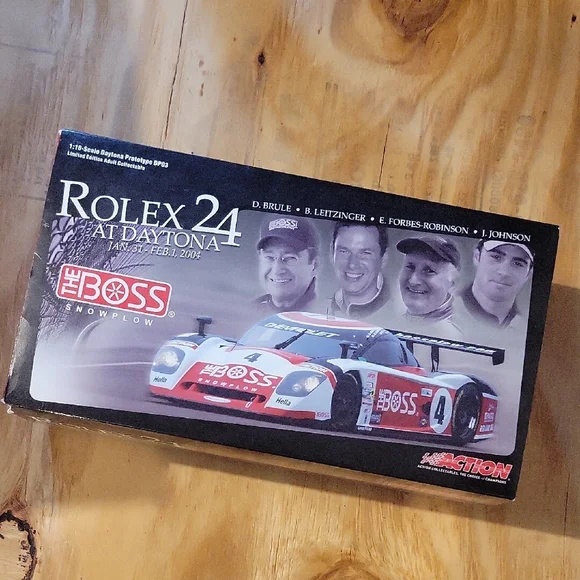 Rolex 24 At Daytona 2004The Boss Snowplow Chevrolet diecast collectible car Action Collectiblespre owned, like new conditionstored in boxExperience the excitement of racing with this white and red toy car, designed with a sleek aerodynamic body and detailed craftsmanship. This model showcases wide fenders and a large rear wing, embodying the spirit of high-speed vehicles. A perfect addition for enthusiasts of finely crafted toy cars.D. Brule, B. LeitzingerE. Forbes-RobinsonJ. Johnson